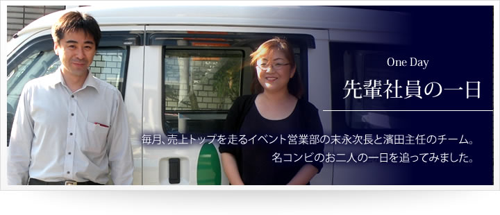 取材担当「末永次長、お片付け終わってくたくたなんですね。目、閉じちゃってますよ。安全運転で事務所に戻ってくださいね。濱田主任、その笑顔は、今日もたくさん売れたんですね。」